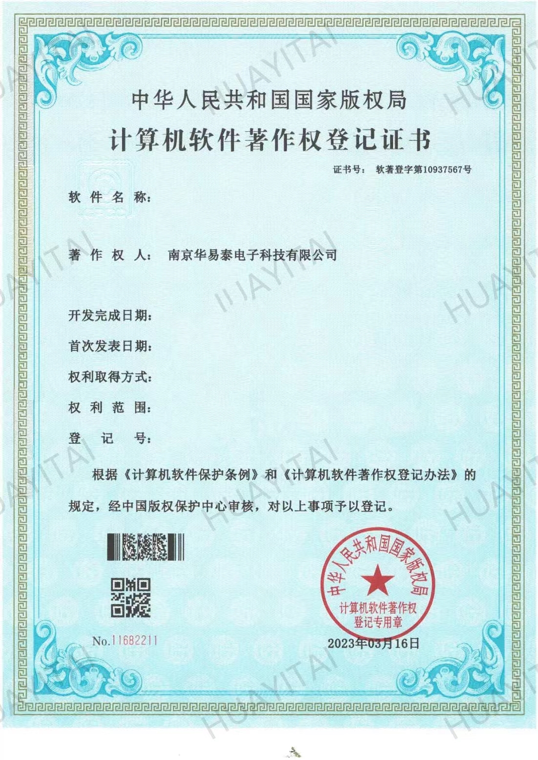 软件著作权登记证书